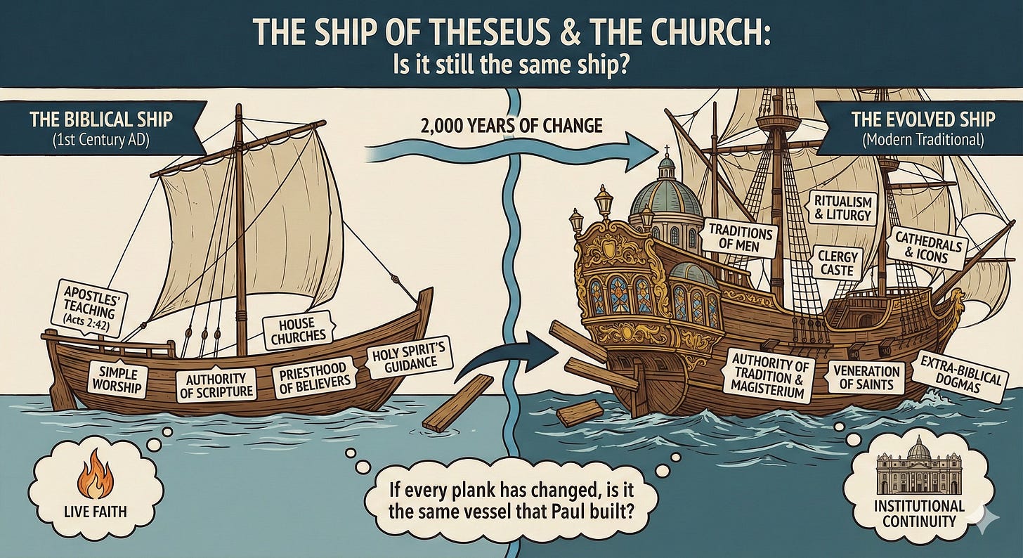 There have been Christians meeting in Thessaloniki, Corinth, and Rome continuously since the New Testament was written. They haven't disappeared. But if we shift our lens from a historical one to a Restoration perspective, a difficult question emerges: If a church survives for two millennia by fundamentally changing its structure, worship, and source of authority, is it still the same church?